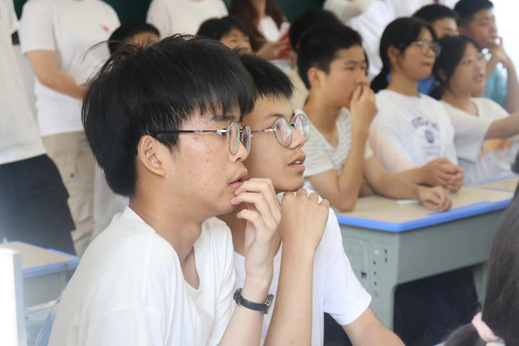 图为同学们认真思考志愿者们提出的问题。