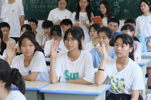 图为同学们积极举手发言。