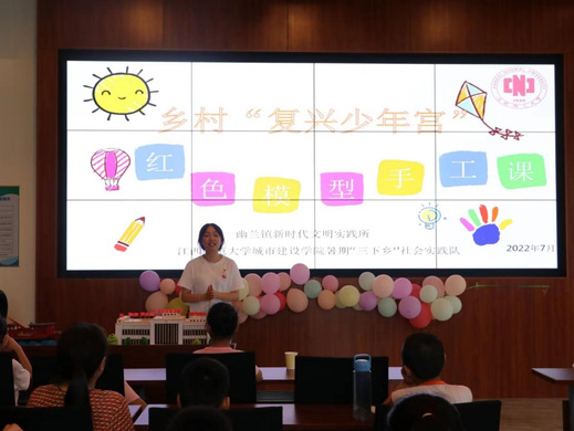7月4日,江西师范大学城市建设学院“寻访红色建筑,赓续苏区精神”暑期三下乡社会实践队在幽兰镇乡村“复兴少年宫”开展了一堂红色模型手工课,带领孩子们动手做模型,体会红色模型的魅力。