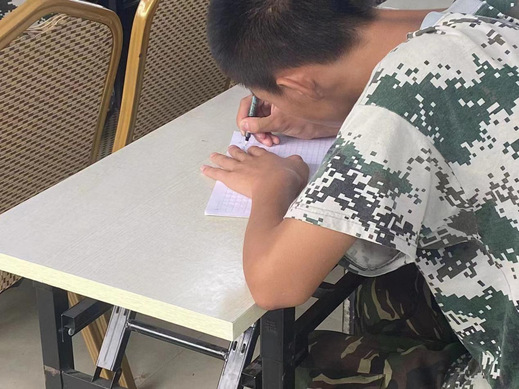 图为同学认真记笔记,学习新知识。