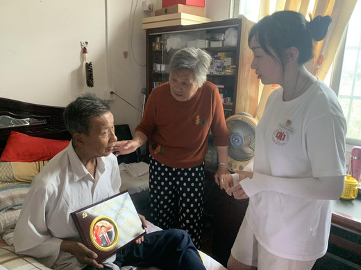 涂爷爷在1972年加入中国共产党,尽管已经过去50年,但每当爷爷回忆起自己入党时的画面,总是止不住地流下眼泪,永远忘不了那一刻,也永远忘不了自己入党时的初衷。在实践队队员询问爷爷入党的初心时,他回答道:“我相信党是全心全意为了人民,是为了整个中华民族的。我也愿意跟随党的脚步,以我所学救助他人,担负起肩上的重任。”涂爷爷在党五十年行医救人,积极参加各地救援救护活动,每天步行穿梭在幽兰镇211个自然村,不怕任何困难与挑战,全心全意为人民服务,积极投身中华民族共产主义事业。
