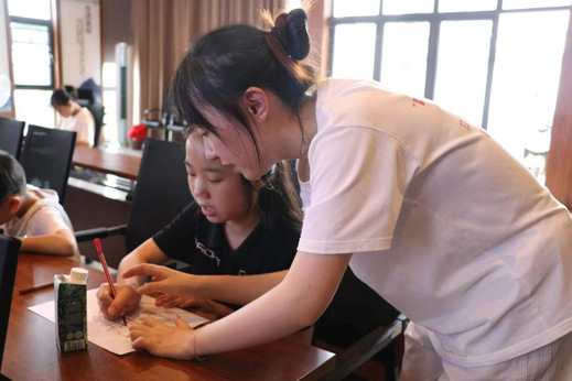 7月6日,江西省南昌县幽兰镇的新时代文明实践所联合江西师范大学城市建设学院暑期三下乡社会实践队开展红色模型绘画课。