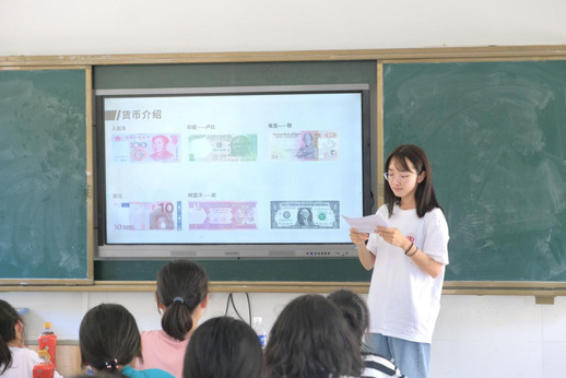 图为志愿者为同学们开展主题为“拼识认货币,学与乐同行”的讲堂。