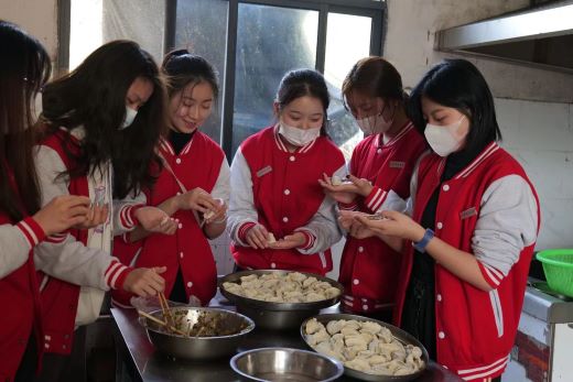 活动前,相关负责人准备好活动物资,妥善安排各项工作。上午九时,志愿者们到达敬老院,正式开展志愿服务活动。志愿者们将切好的水果端给老人吃、陪老人聊天,并为他们打扫环境卫生。随后,志愿者们拿出提前备好的饺子皮和新鲜馅料,与老人们一同包饺子。与此同时,部分志愿者为老人们表演《唱支山歌给党听》等红色歌曲。在等待饺子上桌的时间中,老人们和志愿者欢笑畅谈,而后在志愿者的辛勤劳动下,老人们吃上热气腾腾的饺子,脸上也流露出幸福真挚的笑容。最后,志愿者们共同演唱《三百六十五个祝福》,与老人们一一告别并合影留念,将这美好而珍贵的时刻定格成永远。