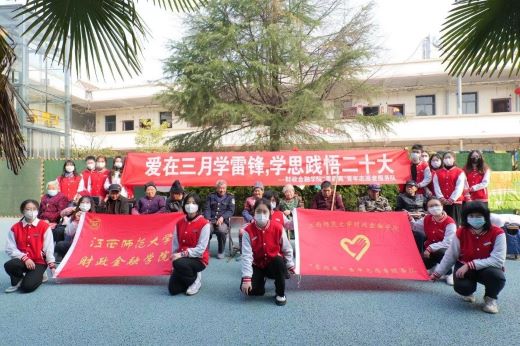 3月4日,财政金融学院“零距离”志愿者服务队前往昌东镇敬老院,开展“爱在三月学雷锋,学思践悟二十大”关爱活动。