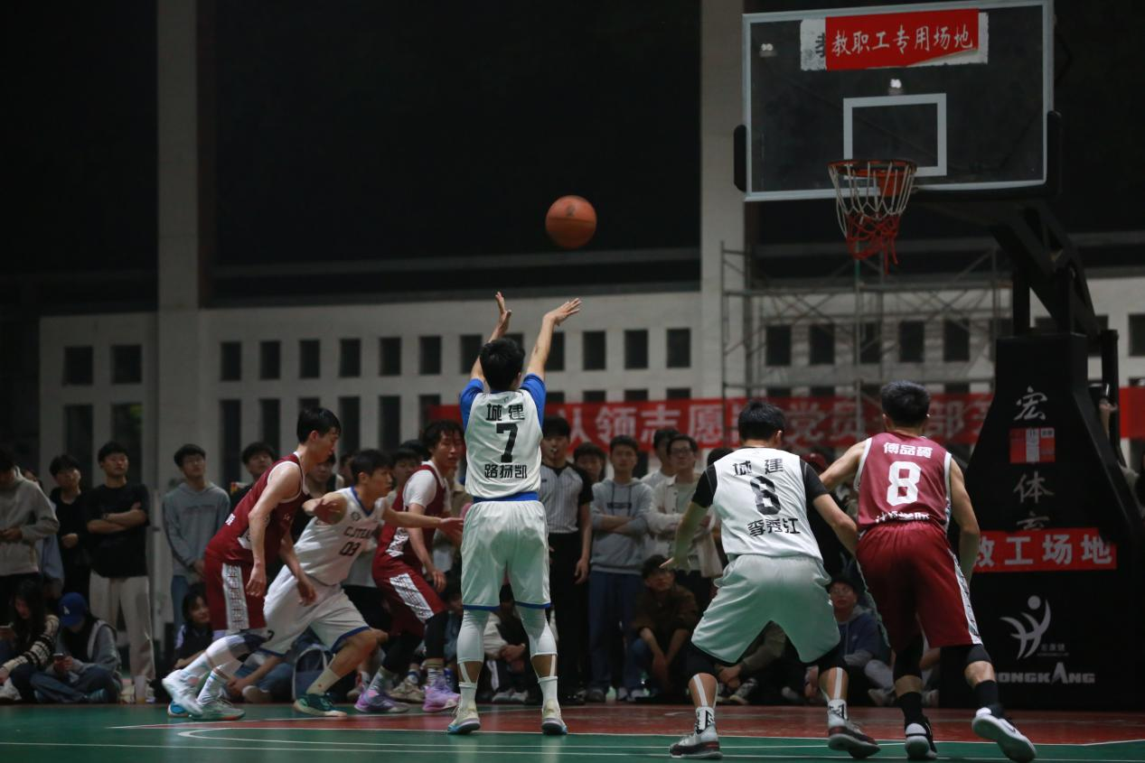 在积累前几场比赛的经验后,城市建设学院篮球队的队员们又一次赛出了他们的气魄。比赛开场,篮球队队员们就对对方发球进行着盯防紧逼,打出了几次有效的包夹上篮,但对方学院也不甘示弱,在进行了几次有效传导球后,计算机信息工程学院的核心球员先后投进了四记三分球,同时在篮下的积极前场拼抢,让他们在三节比赛后以3分的优势进入最后一节。陷入被动的城市建设学院篮球队队员们在教练的激励下克服了紧张和怯懦。“赢了一起狂,输了一起抗!”带着这种心态,他们放手一搏,在篮球争抢方面也不再畏手畏脚,做到了每球必争。