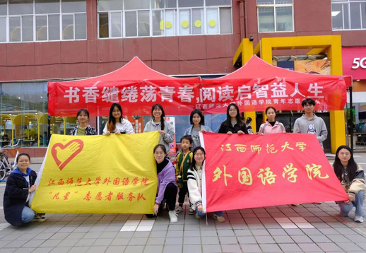 在第28个世界读书日到来之际,为进一步鼓励广大青年参与阅读,4月27日下午,外国语学院“凡星”志愿服务队在芒果食堂门口开展了世界读书日主题活动。