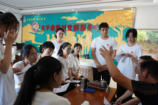 图为团队成员采访太平畲族村村委副书记。