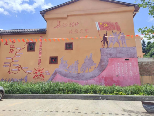 图为队员们一路上所看到的长征精神宣传墙。