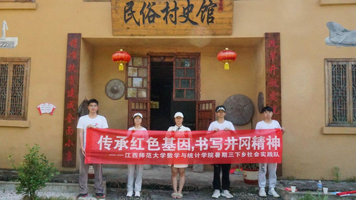 7月9号,江西师范大学数学与统计学院暑期三下乡社会实践队参观调研了江西省井冈山市葛田乡古田村及当地的新时代文明实践站。近年来,依托村里的红色文化资源,古田村探索出“企业+集体+农户”红色研学产业发展模式,实践队队员们在古田村新时代文明实践站宣传员的带领下,走访了这条研学产业赋能乡村振兴的新路线。