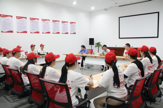 图为实践带队老师、馆内各级领导与实践队员进行座谈,实践队员们对座谈内容做了详细记录。