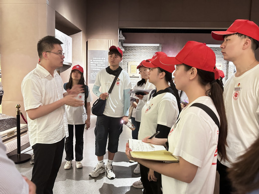 图为井冈山革命博物馆内的给实践队员们进行馆内展览的讲解以及演出节目任务分配要求。