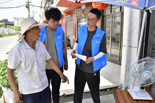 图为村民询问家电维修相关事宜,志愿者耐心解答。