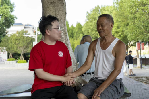 图为宣讲团成员与孙观发老人进行交谈。