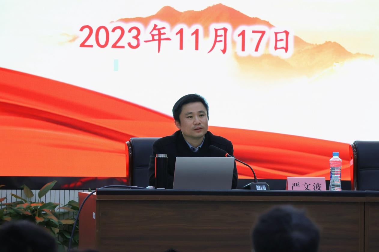 严文波教授以《在建设教育强国新征程中书写青春华章》为题,从“深刻理解建设教育强国重要论述的时代背景”、“深刻把握建设教育强国重要论述的思想内涵”和“新征程上建设教育强国青年学生应该怎么做”三个方面作专题报告。他勉励大家,要坚定理想信念,敢于奋斗担当,练就过硬本领,铸就高尚人格,努力成长为有理想、敢担当、能吃苦、肯奋斗的新时代好青年。