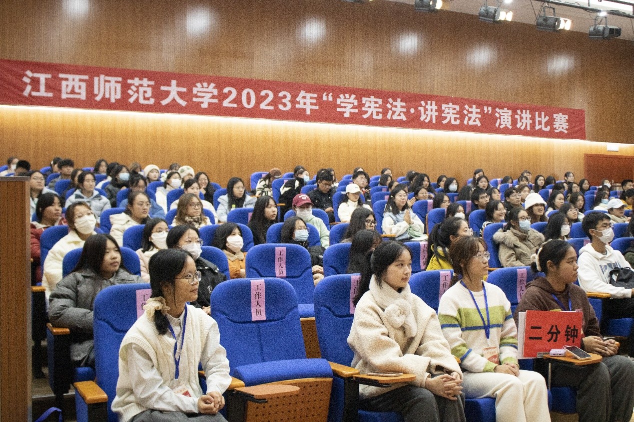 126日,江西师范大学“学宪法·讲宪法”演讲比赛决赛在红色文化教育馆报告厅正式拉开帷幕。宣传部、党校、学工部、校团委、政法学院等单位的相关负责人担任了大赛评委。经过初赛、复赛的选拔,来自政法学院等8个学院的12名参赛选手晋级决赛,来自各学院的100名学生观看了决赛比赛。