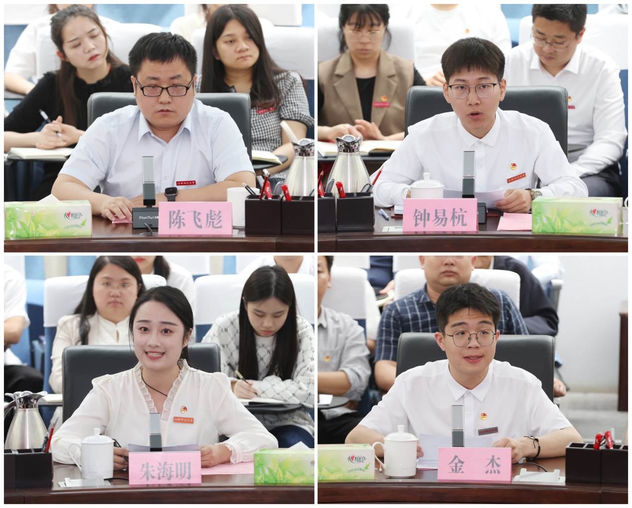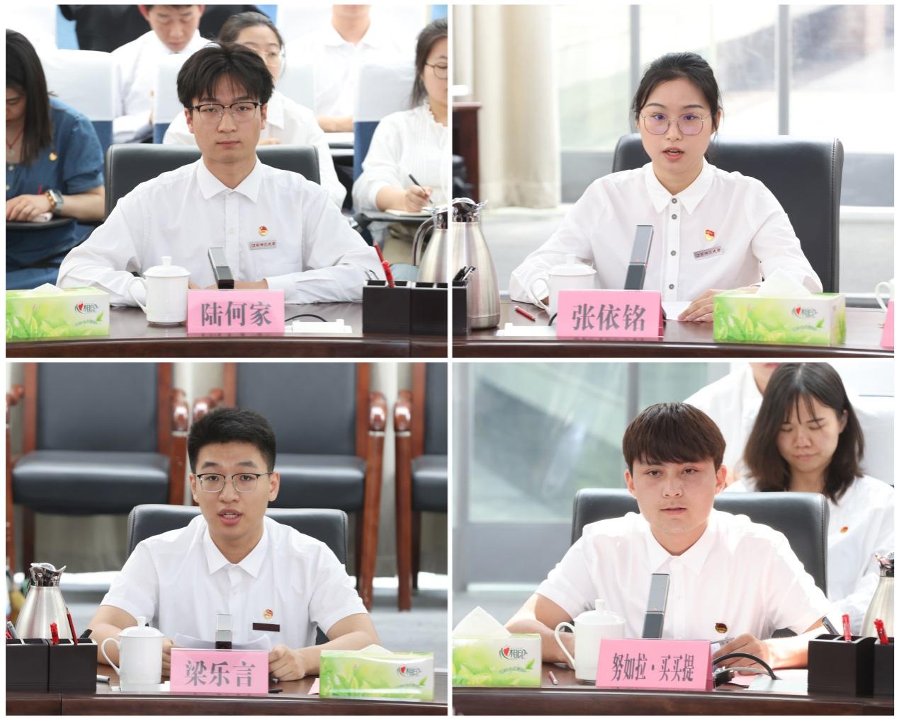 历史文化与旅游学院 2023 级旅游管理专业陆何家、化学化工学院2020级材料化学专业张依铭、计算机信息工程学院2022 级计算机科学与技术专业梁乐言、财政金融学院2023 级金融学专业努如拉•买买提,在调研的基础上,就优化推荐免试研究生评价体系、提升毕业季仪式感体验与就业能力、青年学生社会化能力提升和成立校足球协会等方面提出建议。