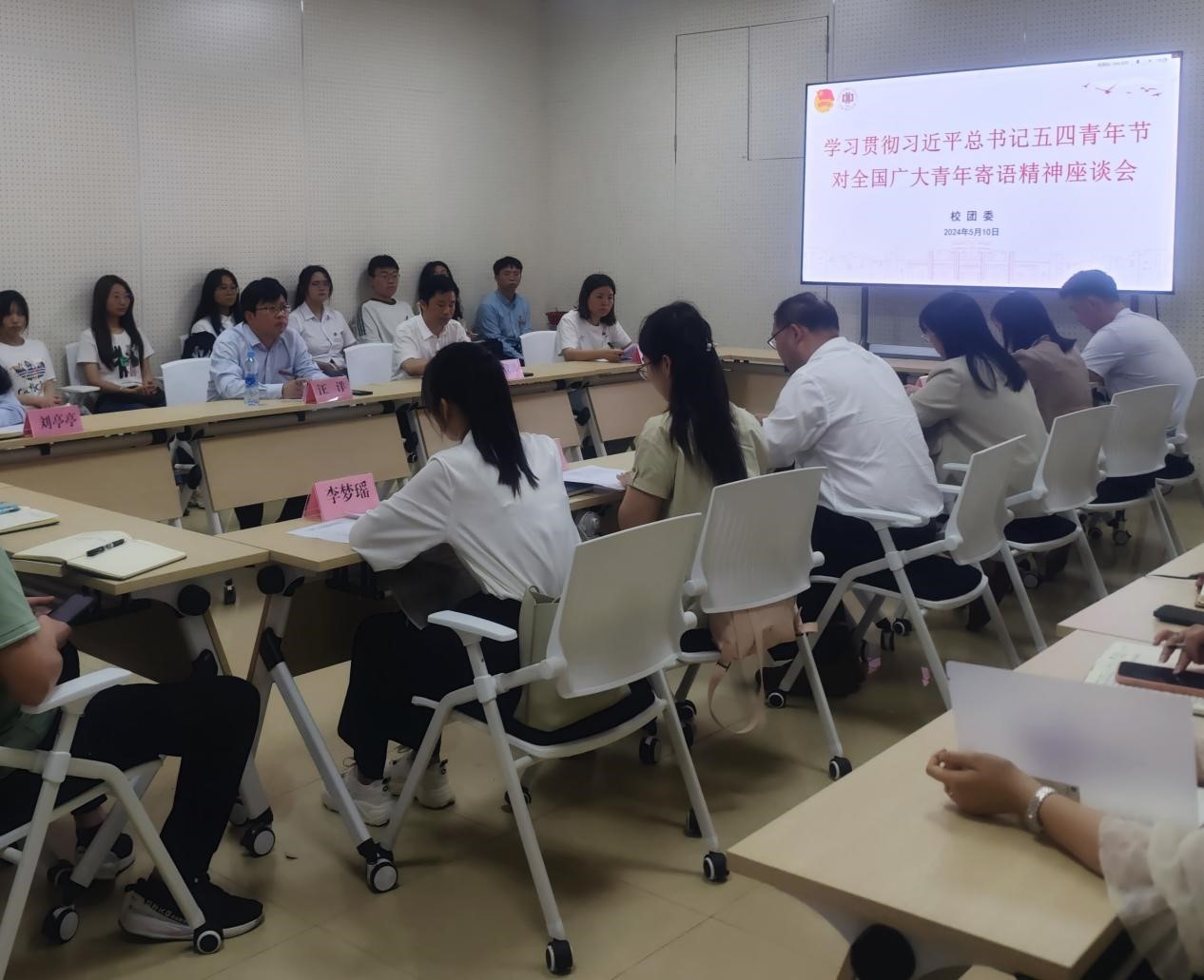 5月10日下午,校团委在大学生活动中心三楼会议室组织召开学习贯彻习近平总书记五四青年节对全国广大青年寄语精神座谈会。校党委副书记汪洋出席会议。全校专职团干部、青年学生代表参加会议。会议由团委负责人严文波主持。