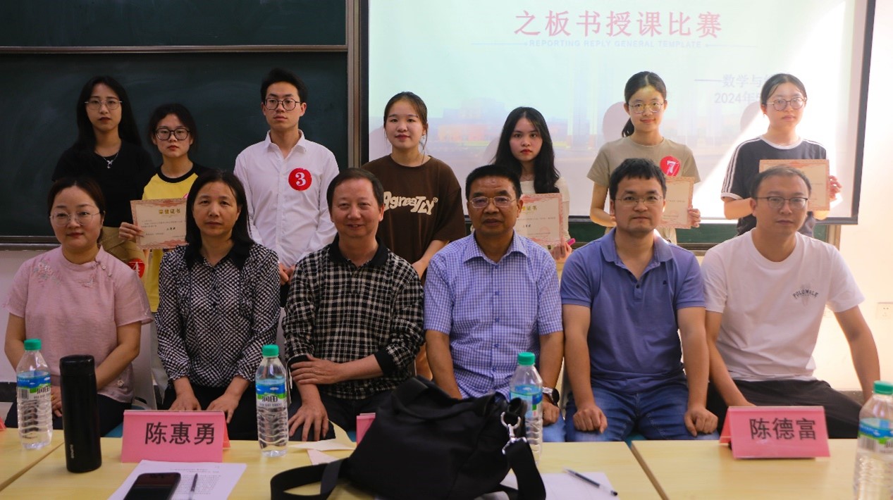 5月28日,数学与统计学院第十九届“青杏杯”教师技能赛之五月红花板书授课比赛在先骕楼3254教室顺利举行,数学与统计学院虞秀云、陈惠勇、易桂生、任琛琛、陈德富、李卓老师作为评委出席了本次比赛。