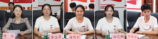 实践队指导教师陈莎,历史文化与旅游学院李玉芹、文学院潘朗妮、马克思主义学院邱艺娴、计算机信息工程学院孙浩乐四位队员代表分别发言,分享了带队体会和实践收获。