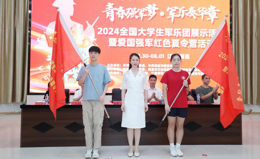 开营仪式现场,共青团江西省委副书记胡振燕为两所高校的学生代表进行授旗并宣布活动正式开营。