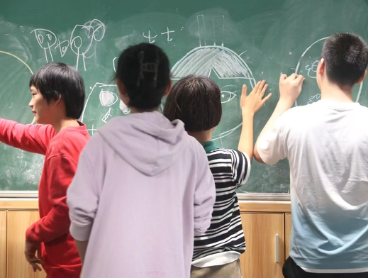 活动现场,志愿者们准备了各式各样的动物卡片、数字卡片和五颜六色的彩笔和粉笔,为孩子们营造了一个充满欢乐与创意的学习环境。在“你画我猜”游戏中,孩子们全神贯注地观察志愿者们在黑板上绘制的图案,积极思考并踊跃抢答。而画五官游戏更是将现场气氛推向了高潮,志愿者们积极引导,并通过鼓励激发了孩子们对美的热爱和向往。此外,通过快乐车和丢纸球等趣味游戏,不仅为孩子们带来了欢笑与陪伴,激发了孩子们的潜能与创造力,更展示了青年志愿者们的责任与担当。