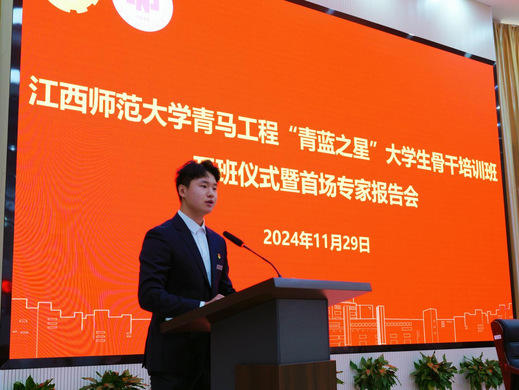 11月29日下午,学校青马工程“青蓝之星”大学生骨干培训班开班仪式暨首场专家报告会在公费师范生院圆厅举行。校团委负责人严文波出席开班仪式。校院两级大骨班学员参加开班仪式和专题报告会。