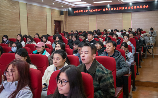 12月17日下午学校“理响师大”青年大讲堂系列宣讲活动首场报告会马克思主义学院二楼报告厅举行。报告会特别邀请共青团江西省委二级巡视员张雪黎教授主讲校团委负责人严文波主持,全校专职团干部、各学院团员青年代表参加活动