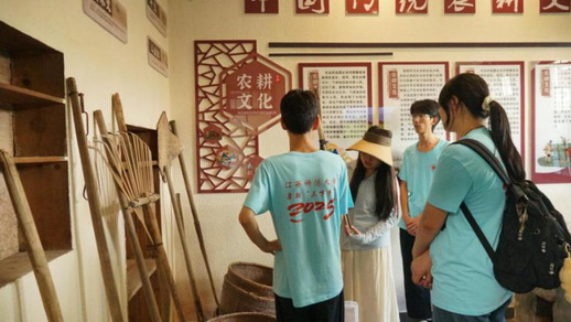 7月5日,江西师范大学数学与统计学院“青春赋能宜黄土,实干共绘振兴图”暑期“三下乡”社会实践队来到抚州市宜黄县圳口乡郊源村,在村书记黄智勇的带领下,前往当地农耕馆和航天科技馆开展参观学习活动。