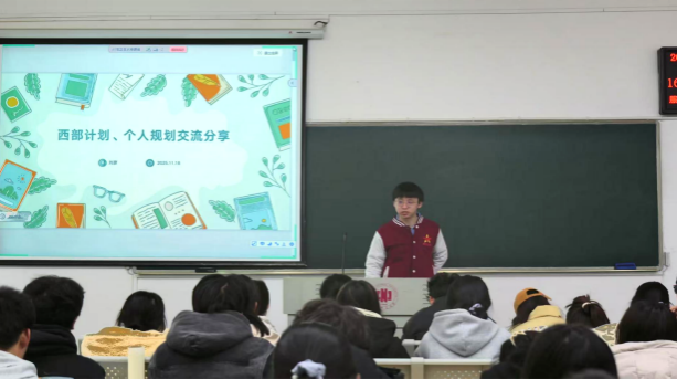 交流会上,政法学院2023级行政管理专业硕士研究生刘彦以“西部计划、个人规划”为主题,结合实习经历与研究生支教团服务经验,带领同学们深入解读了西部计划政策,并分享了实习心得、志愿服务感悟以及公务员备考等方面的经验。体育学院2025级民族传统体育学专业硕士研究生马晨凯围绕“如何做一名优秀的大学生骨干——从同学中来,到同学中去”展开分享,系统阐述了学生骨干的角色定位与学习实践的辩证关系,鼓励大家要在学生工作中勇于担当,真正做到为同学服务。在互动环节,两位同学围绕实习的意义与价值、如何平衡学业与工作等问题进行了细致解答,现场气氛热烈。