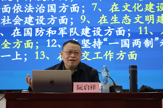 授课中,阮启祥结合党的创新理论的学习与宣传,系统阐述了提升文稿写作能力的方法与路径。在深化文稿内容上,阮启祥从“如何学习”和“学习什么”等方法论视角,强调要全面把握党的创新理论的整体样貌和发展脉络,通过体系化学理化的研究学习,以此来增强对“中国共产党为什么能、马克思主义为什么行、中国特色社会主义为什么好”的认知,并从字词表述规范性和严谨性角度,指出应及时把握新提法、新术语,使文稿内容与时俱进、表述准确。在丰富写作方法上,阮启祥从公文特征、选题方向、结构要领等方面,结合全国两会内容、人工智能发展等具体主题,分享了“反应快、研究深、视角独”的实操技巧。