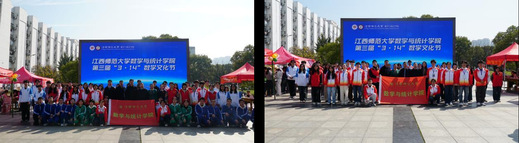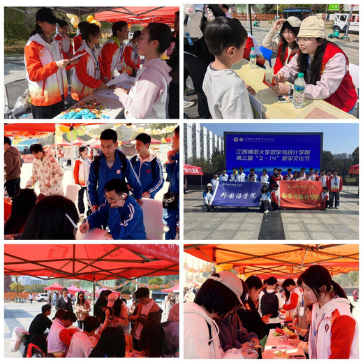 为庆祝第七个“国际数学日”,传播数学文化,普及数学知识3 月 14 日,数学与统计学院在瑶湖校区青年文化广场举办第三届“3·14”数学文化节。校党委常委、副校长董圣鸿,校党委常委、宣传部部长王一喜到场体验指导,学院领导班子全程统筹组织并带头参与活动,我校和江西水利电力大学、附中瑶湖分校师生代表近 1500 余人踊跃参加。